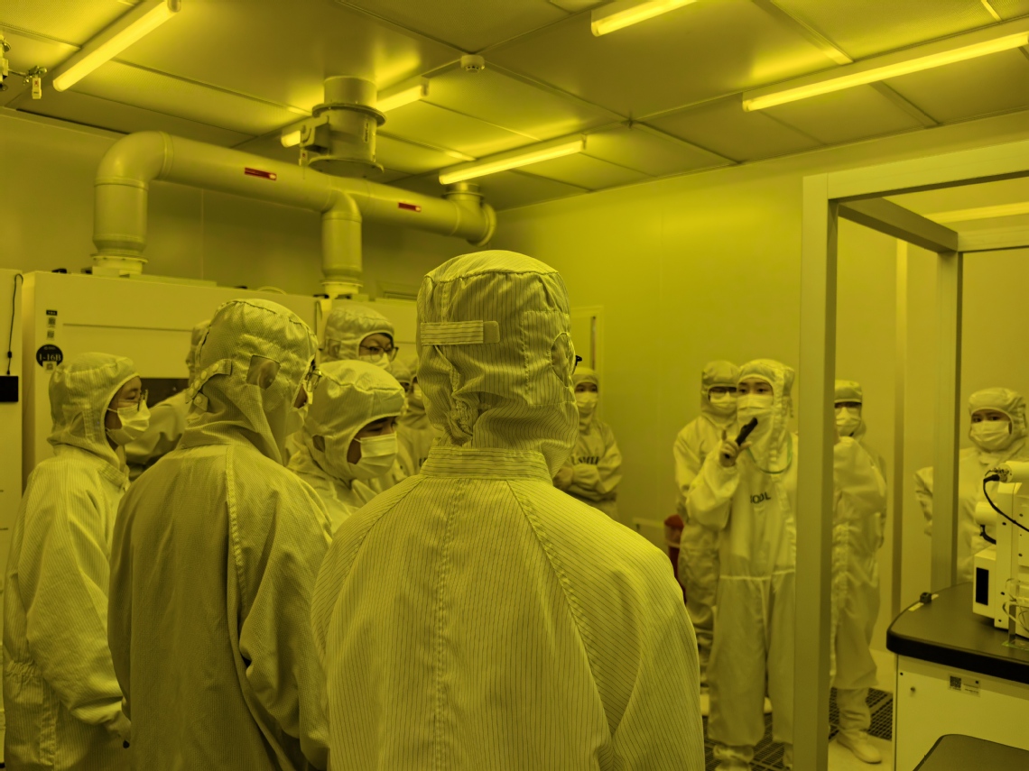 学员们首先听取了中心关于公共科研服务、技术研发与实践育人能力全方面的介绍,并在中心老师们的带领下参观了SMDL“微光展廊”主题展厅。大家通过展窗了解了超净间的配置规划,观看了步进式光刻机教学仿真模型、并参观了学生实践的实物芯片,对芯片设计与制造流程有了更深入的理解。随后,学员们在工程师的指导下穿戴洁净服,进入SMDL超净实验室,在科研工艺线上近距离观摩镀膜、光刻、刻蚀等高端微纳加工与测试设备。工程师现场讲解了这些设备在微纳器件制造中的具体应用和技术要点。实践学习结束后,来自高校的学员们纷纷表示,这种近距离接触高端微纳制造仪器和设备的机会,极大地弥补了传统课堂教学的局限,让他们对前沿科研工作有了更直观深刻的理解,也为他们今后的科研方向和职业发展路径提供了宝贵的启发。
