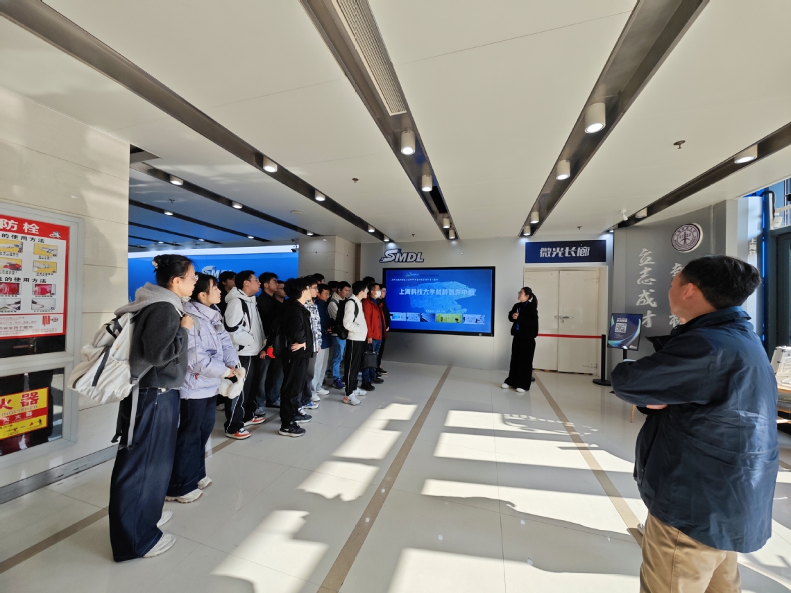 2025年12月19日上午,上海交通大学与张江实验室联合开设的《超大规模集成电路先进光刻技术》课程的20多名博士研究生一年级学生,在上海交通大学课程负责人和张江实验室研究生管理办公室相关负责人的带领下,来到上海科技大学材料器件中心(SMDL),开展线下实践课程学习。本次实践学习作为该联合开设课程的重要组成部分,旨在通过实地参访和现场教学,帮助学生将理论知识与实践相结合。