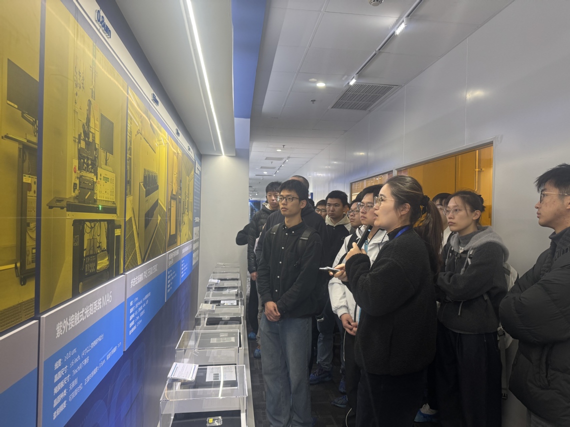 在中心讲解老师的专业引导下,学生们实地参观了SMDL微光展廊。中心讲解老师系统介绍了材料器件中心的平台概况、设备资源与服务能力,并重点讲解了光刻机的分类、技术原理及发展历程。